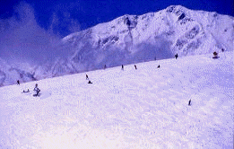 白馬三山をはじめとした北アルプスの大展望台です。スキーやボードをしなくても岩岳の山頂は楽しめます。 |