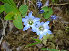 タテヤマリンドウ(リンドウ科リンドウ属)立山竜胆 山麓に咲くのはハルリンドウ、これはその変種。花茎の高さは5~10cm。小さく可憐な花である。登山道の脇、ハイマツの木陰に咲いている。 |